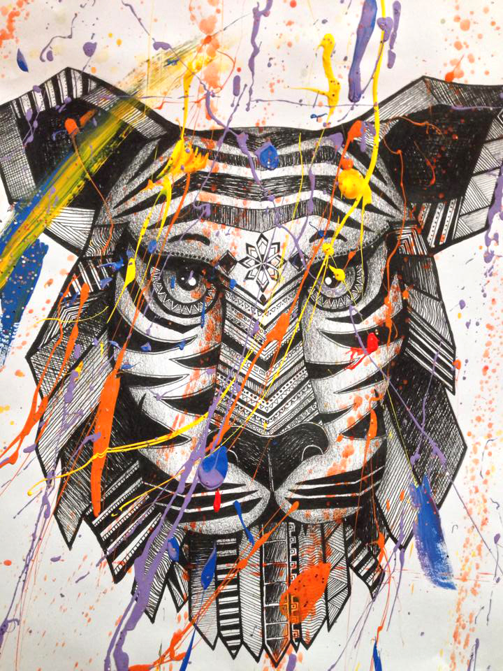 It can take Zoe many hours of hard work and concentration to complete a piece. Zoe said, “Working slowly in front of the TV can take around eight hours, however working nonstop may take around four to six hours.” Zoe has a range of different art pieces on her Facebook page but says, “The animal fine line pieces are my favourite. They seem to be the most eye-catching and also the best sellers. The pieces that include a bit of colour (such as watercolour backgrounds, coloured pencil colouring and paint splatters) are also really fun.”